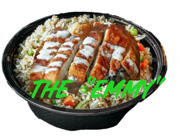 BONELESS WHITE AND DARK MEAT CHICKEN GRILLED ON SHAWARMA DONNER TO PERFECTION SERVED OVER BED OF YELLOW SAFFRON BASMATI RICE WITH A VARIETY OF MIDDLE EASTERN PICKLES, LETTUCE, TOMATO, HUMMUS AND RED ONIONS WITH OUR HOMEMADE AIOLI DRESSING AND HOT PITA BREAD.