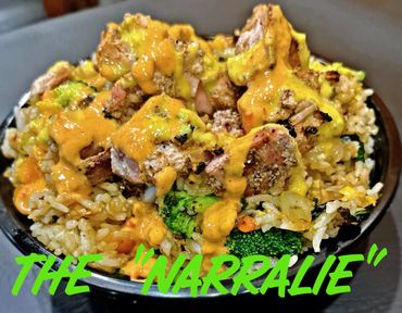 GROUND CHICK PEAS WITH FRESH HERBS AND SEASONINGS DEEP FRIED TO A GOLDEN BROWN FINISH SERVED OVER BED OF YELLOW SAFFRON BASMATI RICE WITH A VARIETY OF MIDDLE EASTERN PICKLES, LETTUCE, TOMATO, HUMMUS AND RED ONIONS WITH OUR HOMEMADE AIOLI DRESSING AND HOT PITA BREAD.